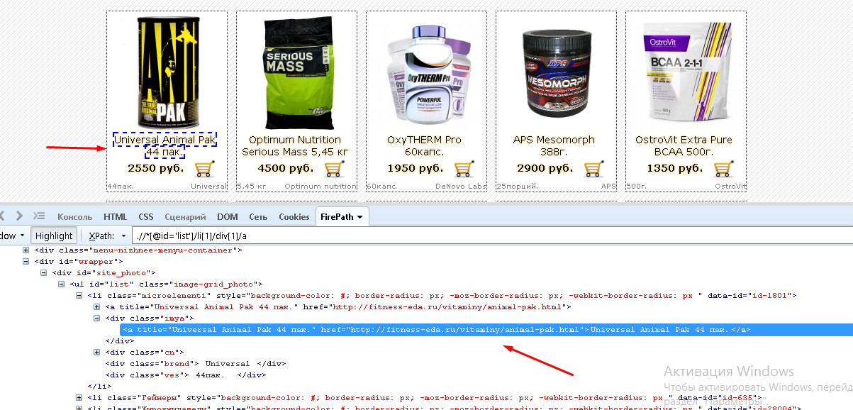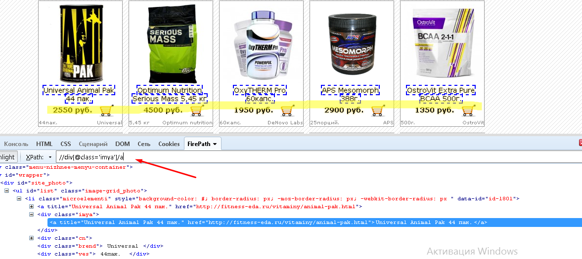 Но нам необходимо прописать такой путь, чтобы были выбраны все наименования на этой страничке.