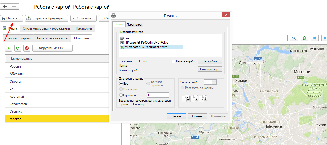 Просмотр полученой карты в браузере и соответственно использование возможностей браузера по печати документов
