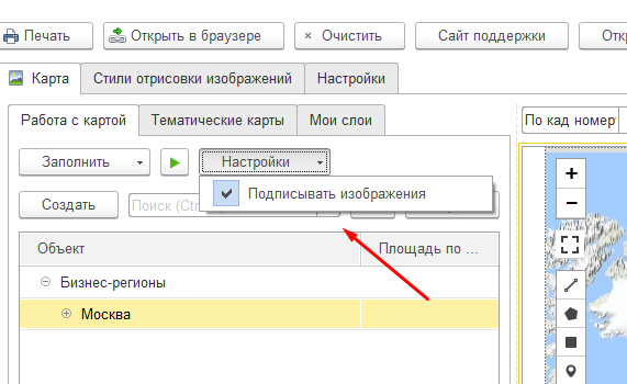 Возможность вывода сохраненных изображений на карту, как построчно так и группами